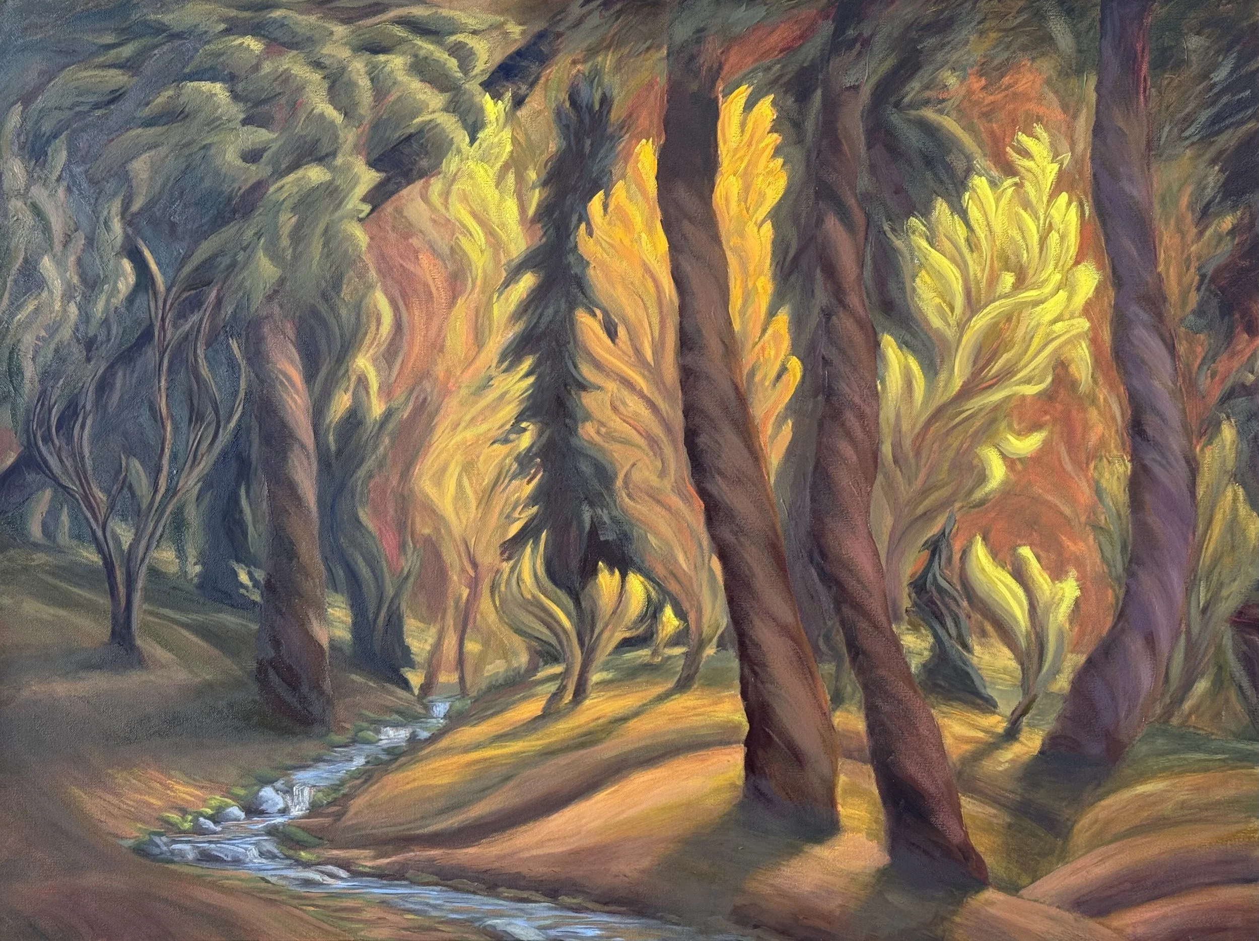 In his solo show “Fluid Landscapes”, Michael Kinsley’s newer landscape paintings are notable for their intriguing amplification of Nature’s sensual forms. These “fluid” landscapes in oil depict familiar scenes in SE Utah and Western Colorado, especially the Roaring Fork Valley. Though he often paints outside, his larger studio pieces are based on his outside sketches. Michael says, “In an increasingly troubling world, my paintings are solace to me and hopefully to the viewer.”
