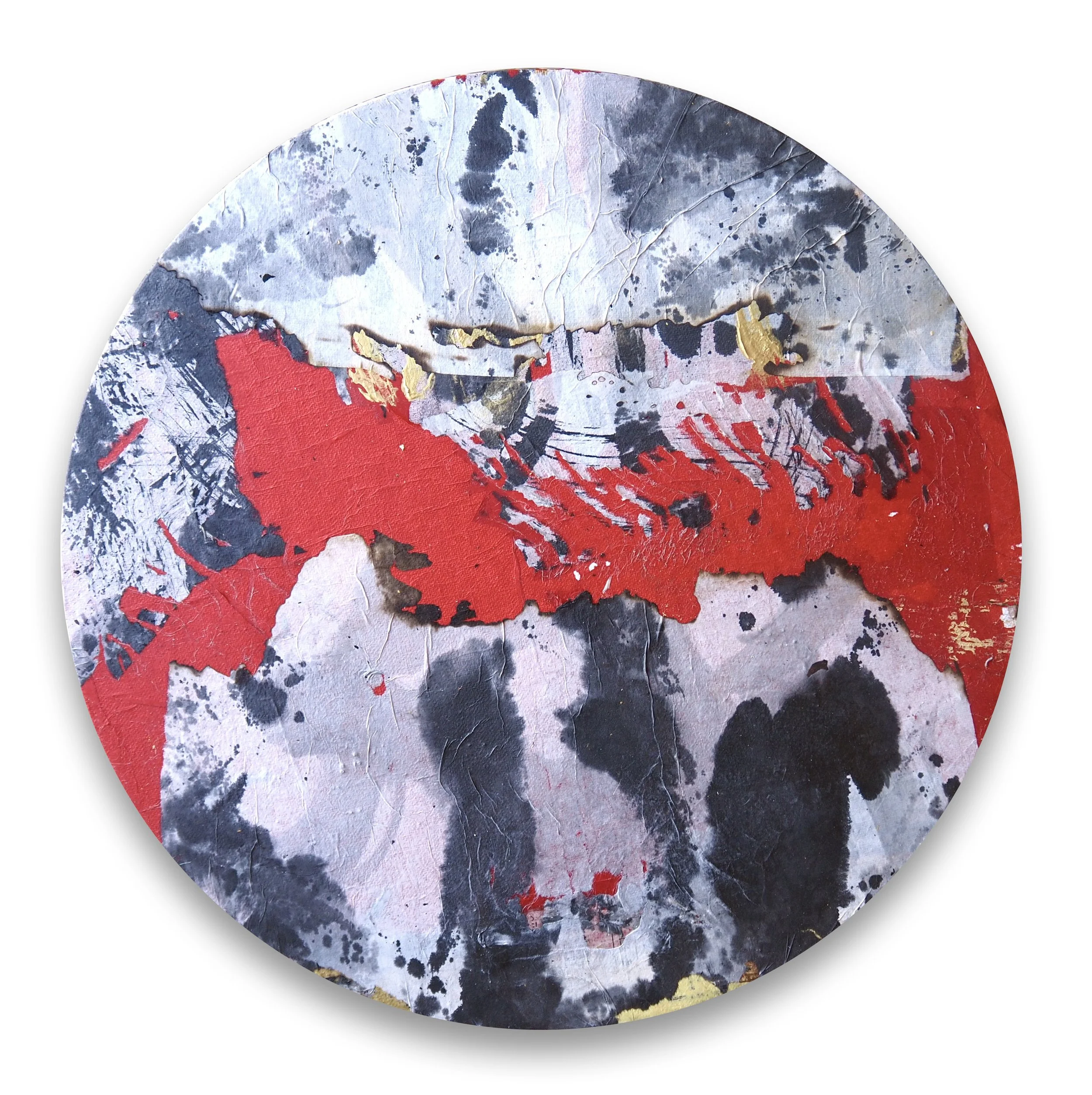 What started as a figurative investigation while attending fine arts school has turned into a divergent exploration on the evocative power of materials (paper, pumice, wheat paste, fibers), techniques (décollage, shodō, burning, ripping, tearing, stabbing), and the balance between: subtraction-addition, destruction-creation, chaos-order. The intention to control the unpredictable nature of an element like fire. The alchemy of materials and their particular properties create a symbolical reference to scars and lacerations. The observer can experience their own emotional response through contemplation, capitalizing on stored memories and associations. A painting is an aesthetic object with its own expressive power that acquires ontological status.