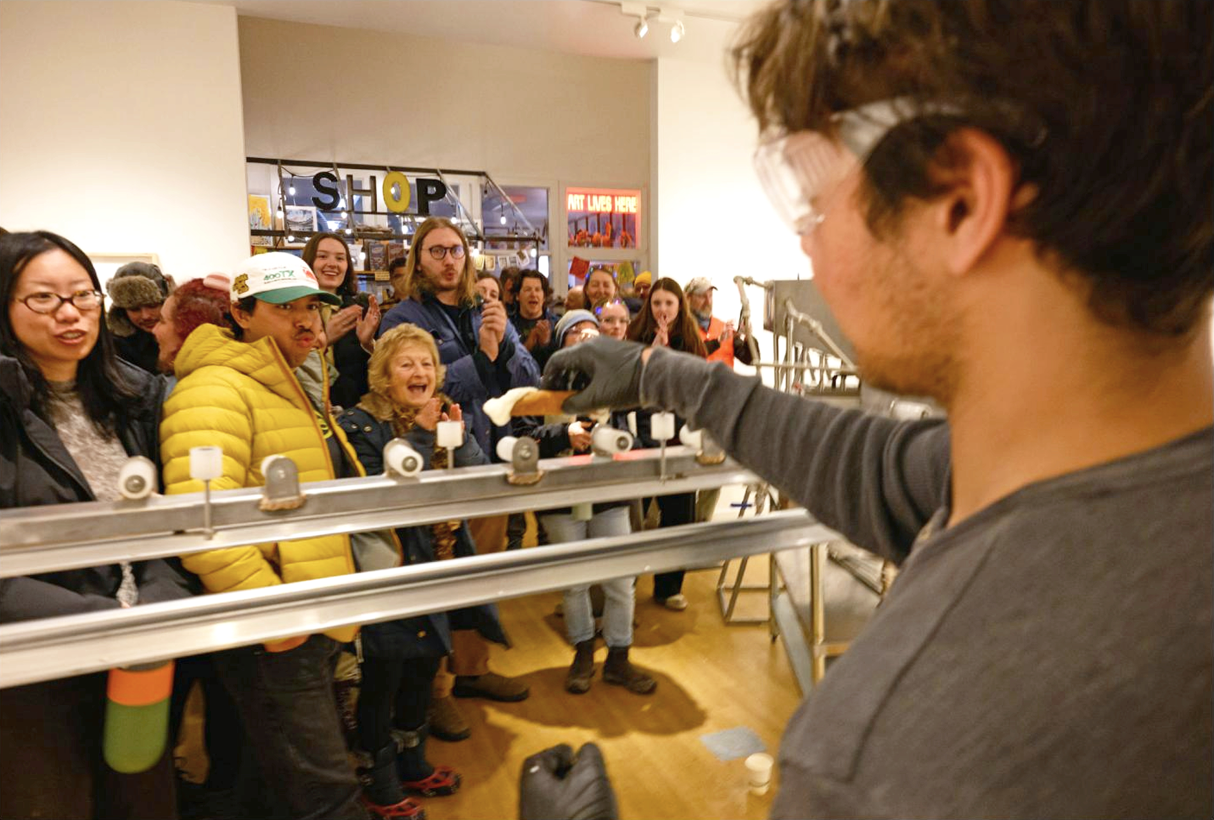 Video taken by Mads Spence at the opening reception of “Sweet Excess”, the first activation of artist William Lanzillo’s cannoli machine.