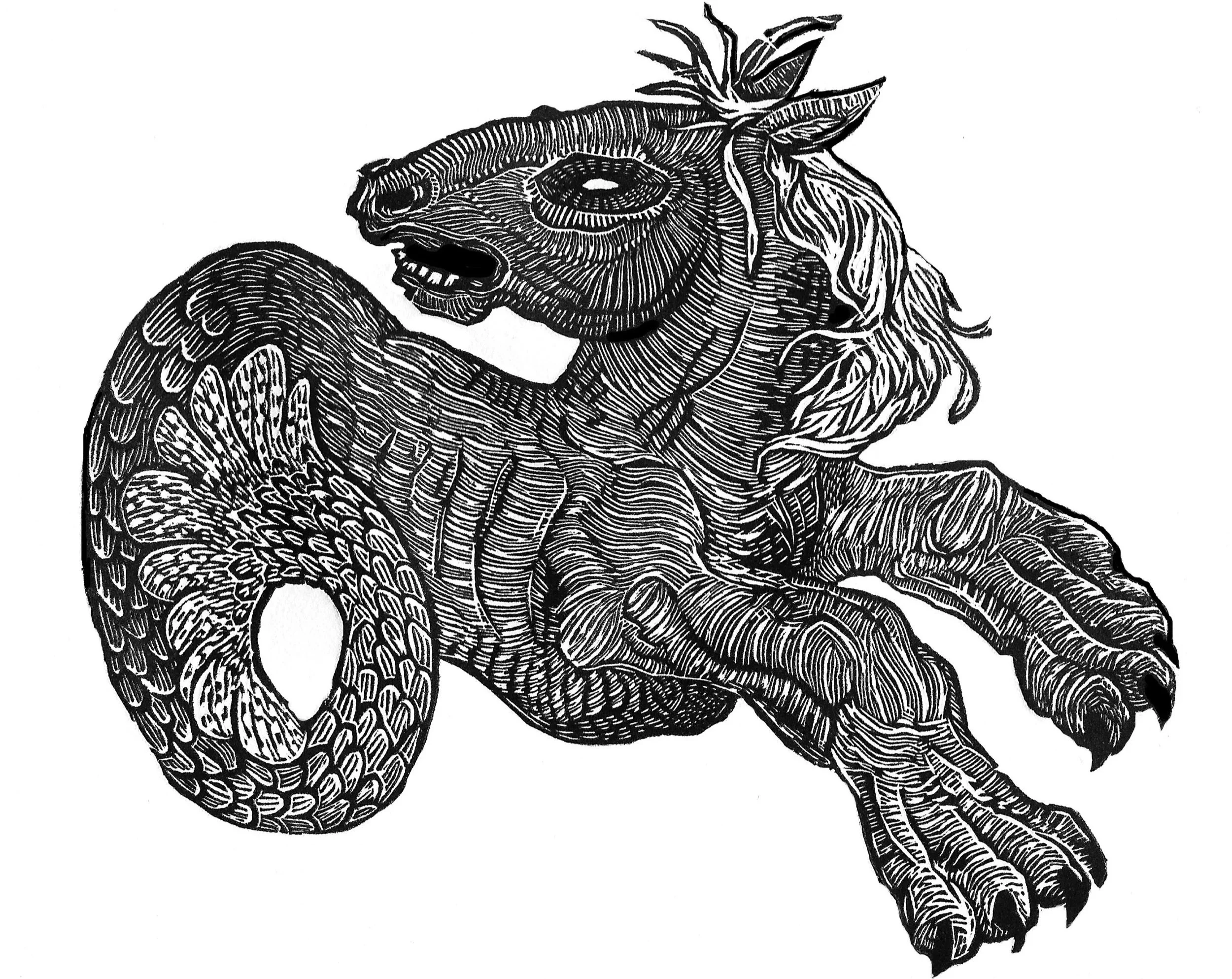 Art was always more his thing, though, and now devotes his life to making it and promoting it. He’s a linocut printmaker, musician, and photographer, but does enjoy other drawing-based media and sculpture. He finds eternal fascination in the order and chaos dynamic, often expressed through the filters of nature and family/social relationships.