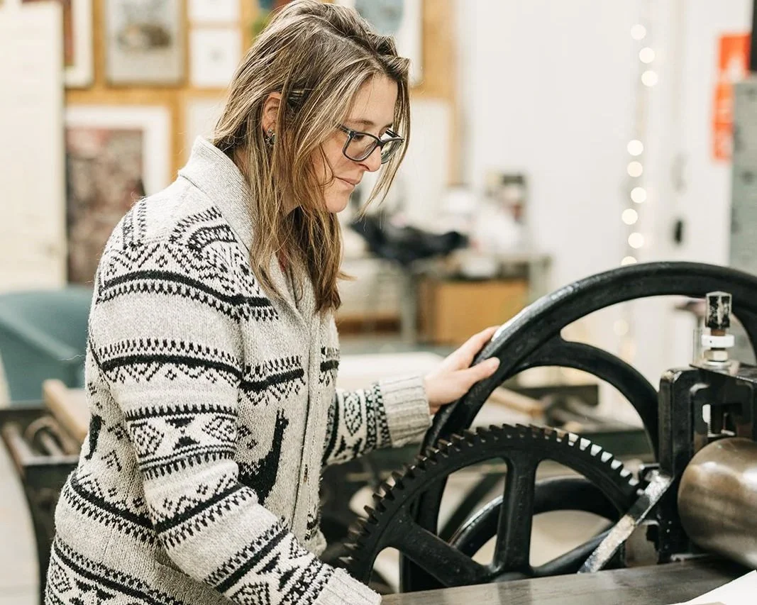 Johanna Mueller is an artist and entrepreneur, born and raised in Denver, CO, now residing in Greeley, CO where she co-owns and operates Wonderhand Studios, a cooperative printmaking studio. Her artwork utilizes printmaking mediums, primarily detailed engravings centering on animal themes. She earned a BFA in printmaking from The Metropolitan University of Denver and an MFA in printmaking from George Mason University in Fairfax, VA. She has exhibited widely across her home state of Colorado, as well as nationwide, and is represented by Kuehl Fine Art in Trinidad, CO and Keep Contemporary Gallery in Santa Fe, NM.