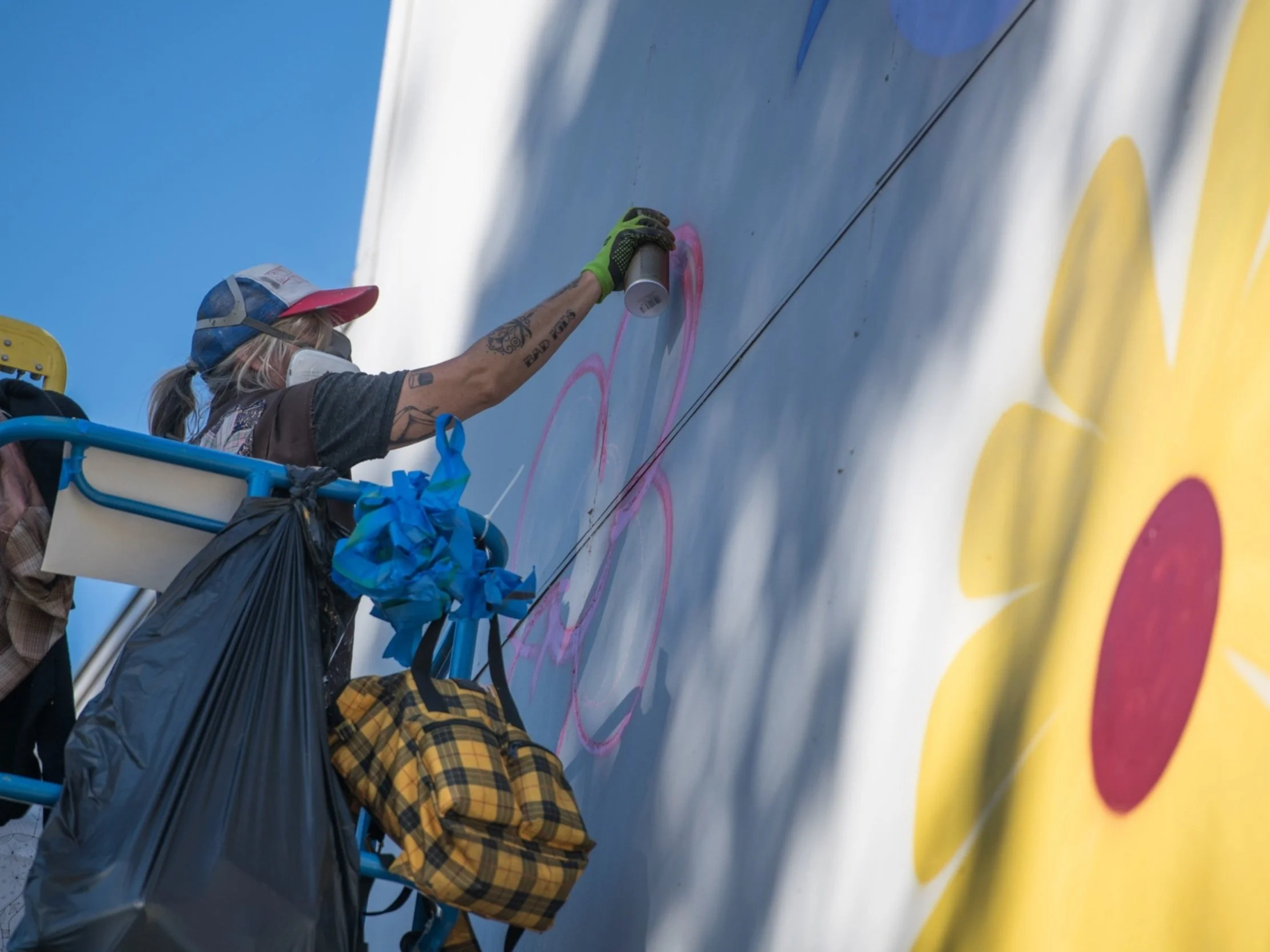 Muralist Bunnie Reiss is a Colorado-raised artist, now living in LA. Her murals have graced walls throughout the United States and beyond. Having come from a large Polish/Russian family, eating, loud talking and community shaped her life. Magic, mysticism and the stars slowly crept into her conscious, and she began almost obsessively studying anything she could get her hands on. With her need to travel slowly pushing her all over the world, she eventually left Colorado and relocated to San Francisco, which at the time was a hub for creativity and guerrilla art. Her almost 15-year life there included an MFA from San Francisco Arts Institute and years of creative incubation in wild streets full of weird art and people painting everywhere. Her work is heavily influenced by her Eastern European background, with its tradition of folk art, bright colors and community engagement. Her extensive travels have also added an extra layer of conversation, which make her creations unique. She has shown extensively in both the United States and around the world, in galleries, alternative spaces, bookstores, abandoned buildings, fields and forests, or any place that seems to need a little extra magic. Her brightly colored folk murals decorate many countries and can be found all over the world. Los Angeles, Mexico, Italy, Paris, India, Philippines, Detroit, Milwaukee, New York, San Francisco are just a few places you would likely stumble upon one. Find more of Bunnie’s work at bunniereiss.com